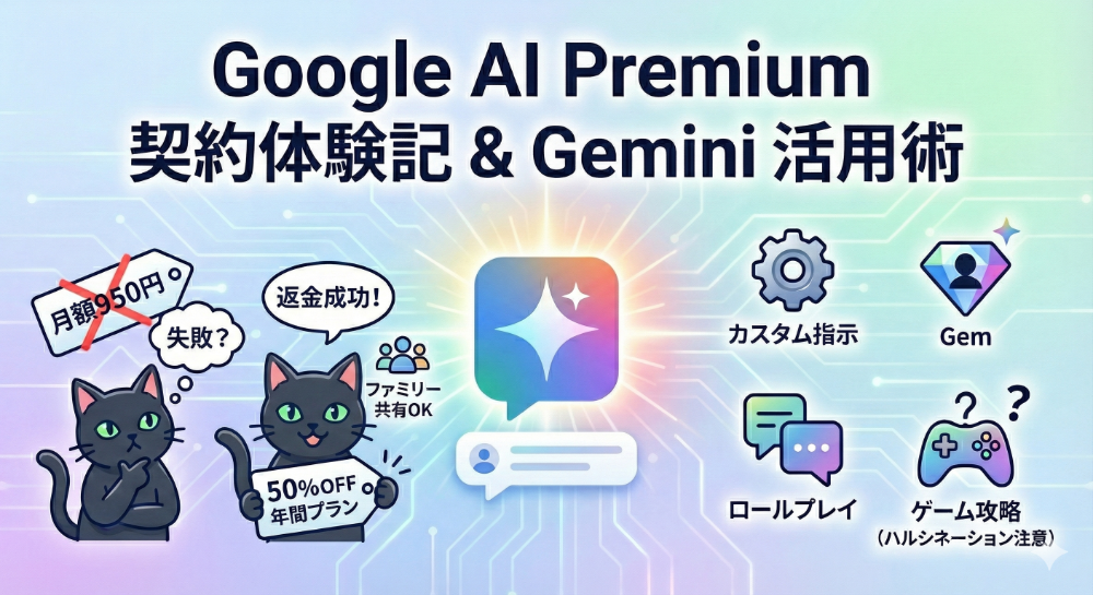 というわけで、今回はタイトル通り、Google AI Premium を契約した話と、Gemini を1週間ほど触ってみた感想、そして実際の使い方の記事です。